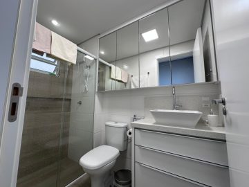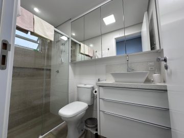 Banheiro: Completo com armários planejados.