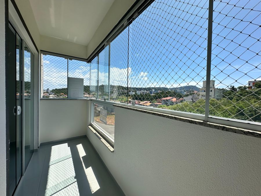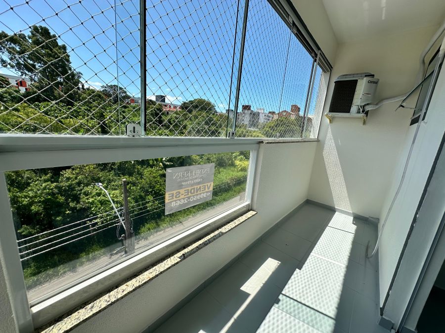 Apartamento 2 quartos em Serraria, São José com 65m² privativos e vista livre de andar alto. O imóvel possui sala para dois ambientes, cozinha com móveis planejados, 2 dormitórios sendo 1 com sacada ampla fechada com vidro, banheiro social completo, lavanderia e 2 sacadas sendo 1 com churrasqueira. Conta com 2 aparelhos de ar condicionado nos dormitórios, 1 vaga livre coberta e acabamentos em ótimo estado de conservação.