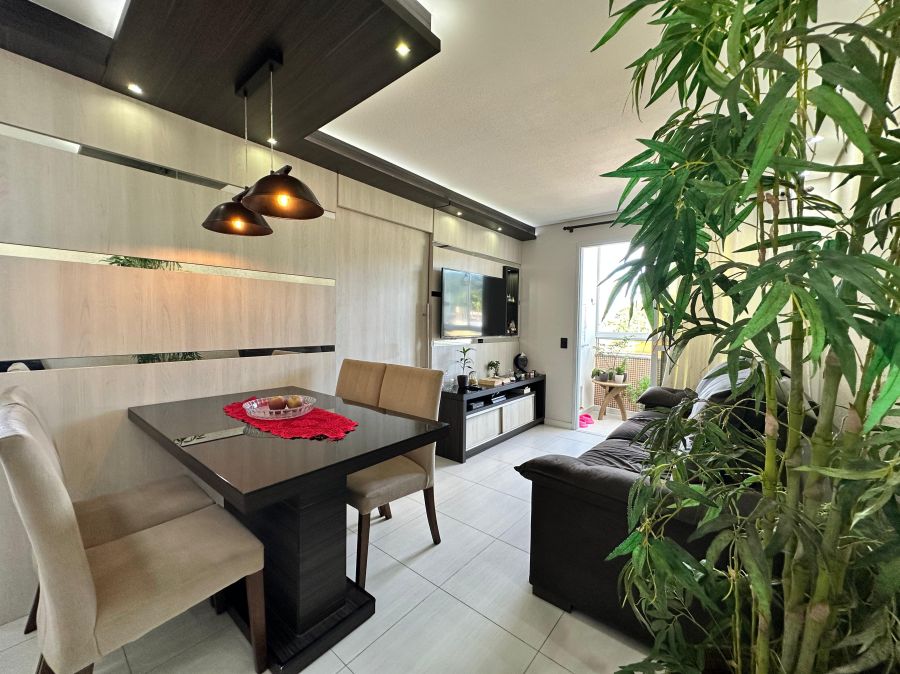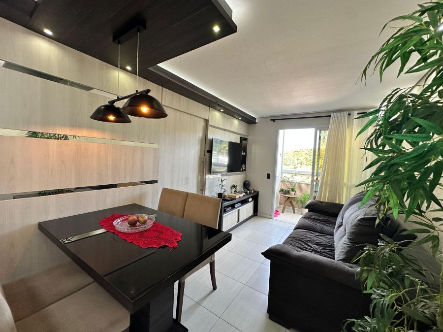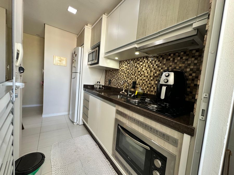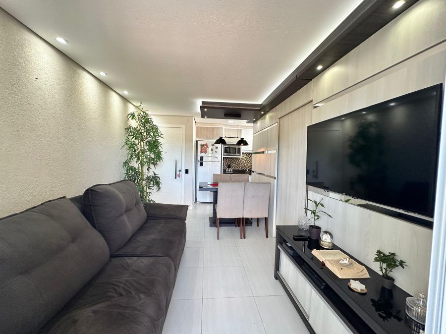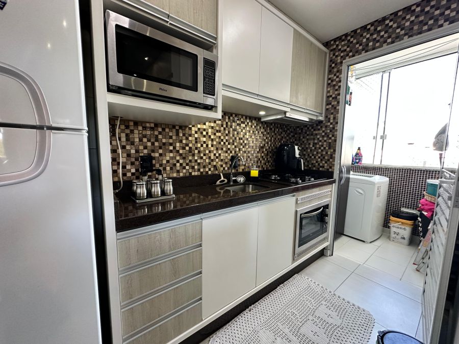 Lindo apartamento semimobiliado de 2 dormitórios, sala, cozinha com móveis planejados, sacada com churrasqueira fechada em vidro, área de serviço, banheiro e vaga de garagem coberta e privativa.