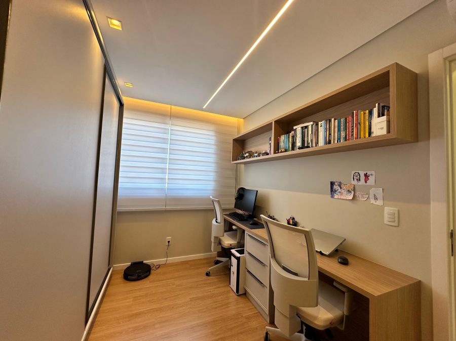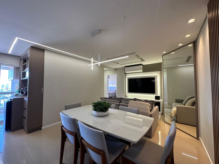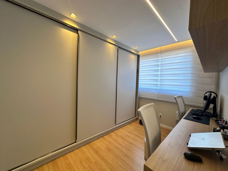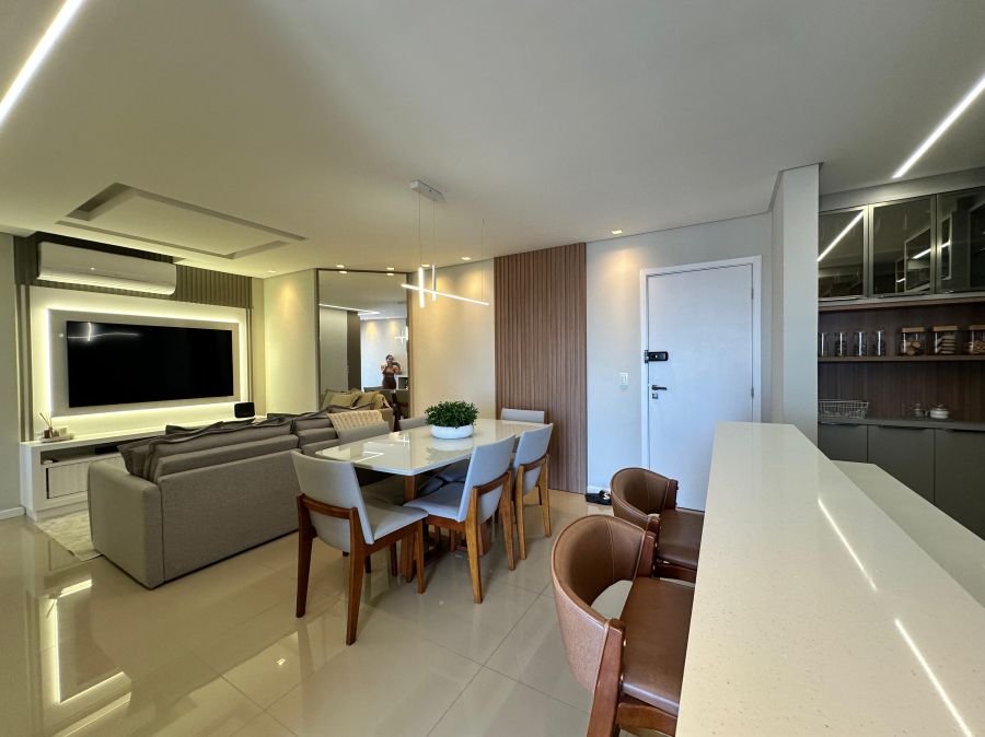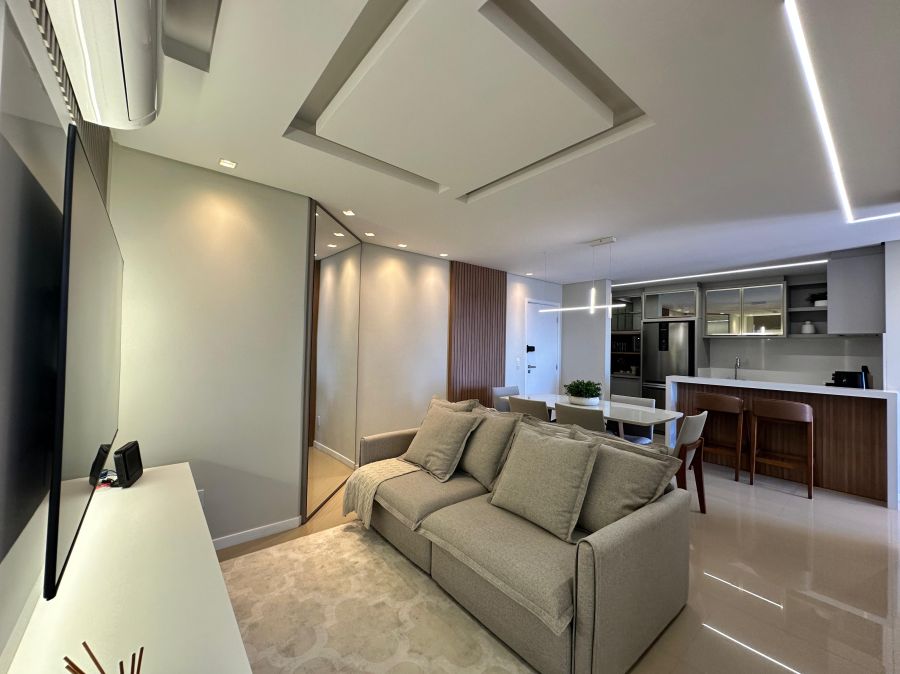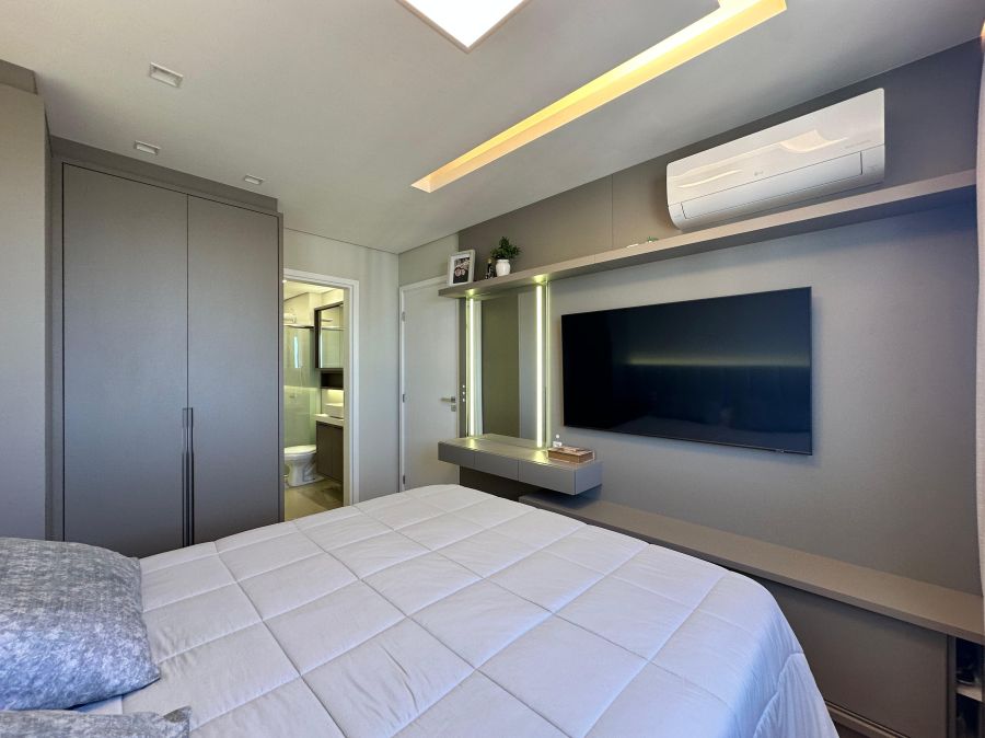 Imóvel entregue 100% mobiliado, com móveis planejados e cômodos climatizados. Conta com piso laminado nos quartos e porcelanato nas demais áreas, além de cozinha equipada, área de serviço, lavanderia e sacada com churrasqueira.