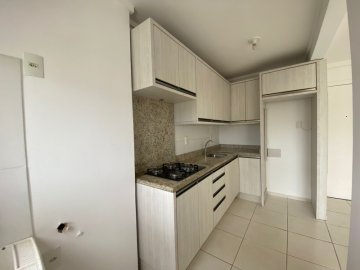 Apartamento 2 dormitórios, sala para dois ambientes, sacada com churrasqueira a carvão, banheiro social, cozinha estilo americana com área de serviço integrada. Ficam no imóvel moveis planejados na cozinha e box no banheiro, possui tela de proteção nas janelas.