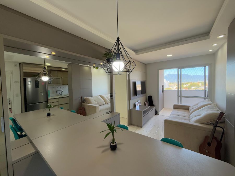 Apartamento finamente mobiliado, com vista livre para o Cambirela, bem arejado, ensolarado, com suíte, vaga coberta e lazer completo no condomínio! Venha conhecer e se encantar!